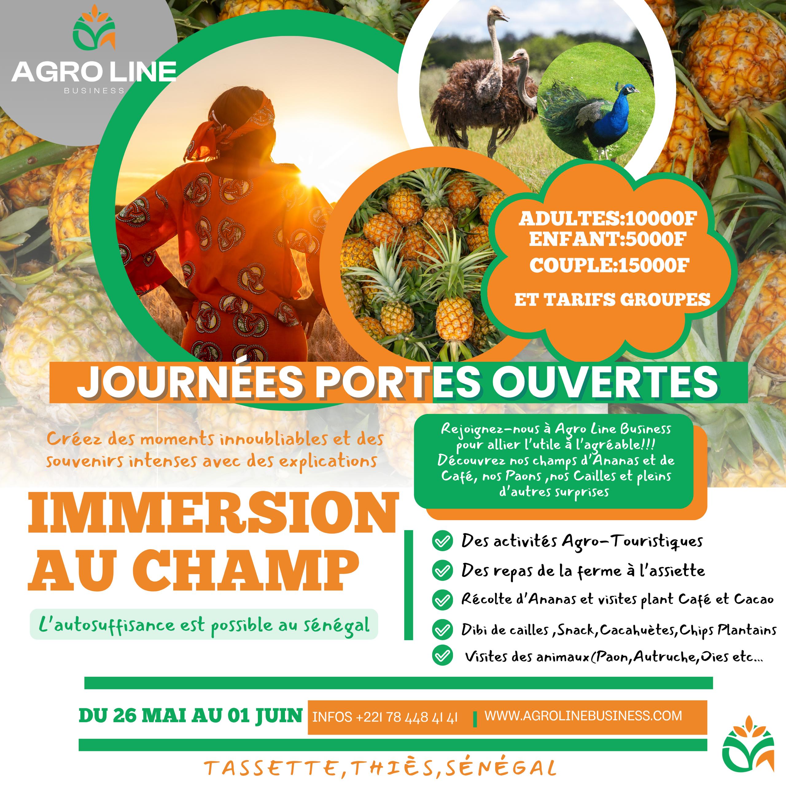 🎉 JOURNÉES PORTES OUVERTES À LA FERME AGRO LINE BUSINESS 🌱 📍 Tassette, Thiès – Du 26 mai au 1er juin 2025 ✨ Envie d’une expérience originale, enrichissante et gourmande ?